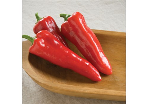 Best-tasting Italian frying pepper. A high-performing rendition of the classic Corno di Toro (or "Bull's Horn") pepper popular in Italy. Early, adaptable, and notably sweet (especially when fully red-ripe) with a shapely tapered silhouette. Begins green, then deepens to a beautiful carmine at maturity. Excellent roasted, grilled, and in salads. Upright, medium-sized plant. plastic free pot