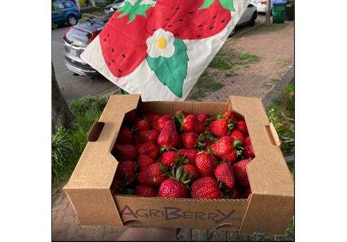 1 Big Box (approx. 5 pounds) of fresh spring Strawberries. Grown by Agriberry farm in Mosley, VA