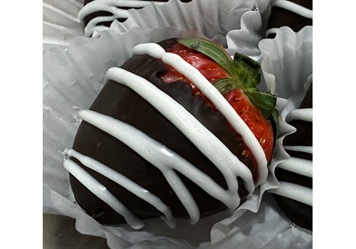 Strawberries hand dipped in dark chocolate and decorated with sprinkles