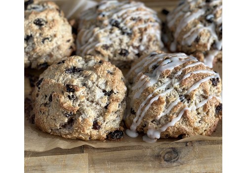 Soft scones with cinnamon and raisins. Choose to have yours with or without icing.