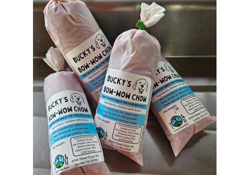 Bucky's Bow-Wow Chow is our pasture raised chicken backs ground up for your favorite fur baby. Named after our livestock guardian dog who loves it! Great for dogs AND cats. Great as a topper for dry kibble. It includes chicken bones, cartilage, meat, skin, and liver completely ground up together.