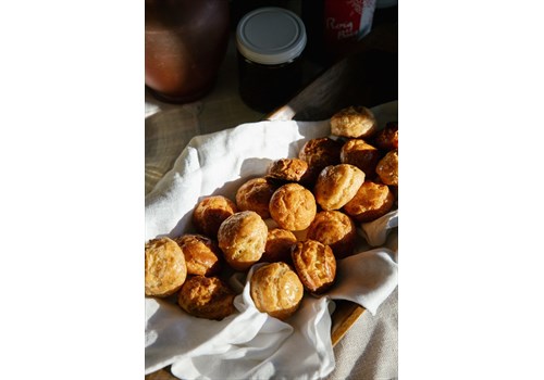 *NEW SEASONAL FLAVOR* Frozen cheese puffs for you to bake at home! This seasonal flavor is perfect for a holiday spread! Made with local eggs, flour, cheese & butter (and squash!). Each pouch contains 12 gougères.