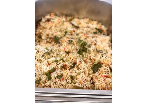 Basmati Rice slow steam cooked with marinated vegetables, spices, mint.
