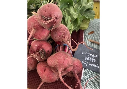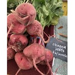These beets are sweet and mild. They have a striped interior. Great cooked or raw.