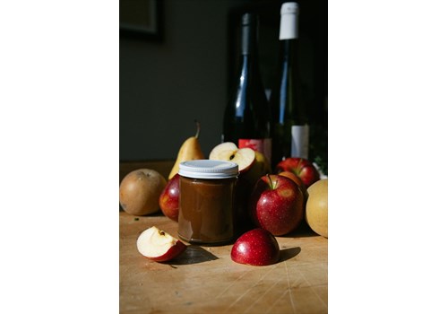 Apples join sweet and Asian pear varieties to be slow simmered into a rich, caramelized spread. Traditional baking spices accentuate the fruits' natural sweetness, rounded out with Virginia-made cider syrup and a hint of vanilla for depth. Fresh thyme is infused during the cooking process, lending an herbaceous brightness on the finish. Incredible on hearty bread with quality butter, on pancakes, or even on-top of pork chops for a sweet-savory moment. Shelf-stable.