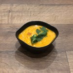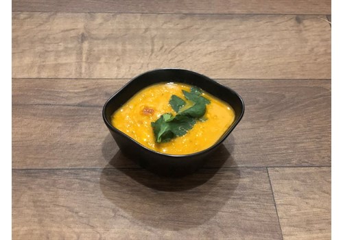 Yellow and red lentils cooked with turmeric, tomato, onion, garlic, ginger, and traditional Indian spices.